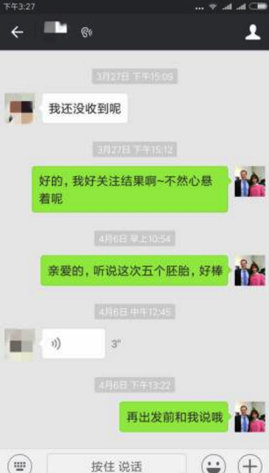 上个月,我们收到美国HRC新港诊所的反馈,杨女士得到了5枚优质囊胚,3个男胚2个女胚,杨女士高兴坏了,这次真的是要成功了。